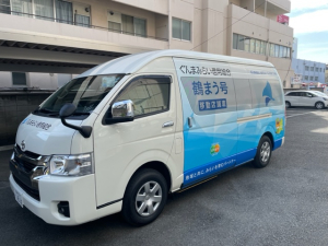 移動金融車「鶴まう号」です。車内には窓口業務を行うことができる設備を搭載しています。