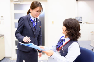 まずは窓口業務を経験し、業務の基本を覚え、融資業務、営業同行訪問と一通りの仕事をローテーションで経験していただきます。