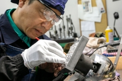 【金型業務】金型は、精度の高さがそのまま品質の高さに繋がります。型同士の合わせ目にずれがないかなど、1,000分の1ミリを攻めていく職人技が光ります。