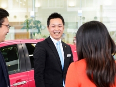 お客様へのカーライフのご提案やメンテナンスのご案内を通したアフターフォロー、また、お客様に応じた自動車保険や携帯電話のご提案など、「お客様のためにできること」を考え、実践し、お客様との絆を太く強くしていくことが大切な仕事です。