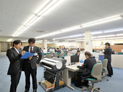 総務、人事、仕入れなど、店舗運営のすべてを指揮する本社オフィス。1都5県にまたがる31店舗へ、地域密着型ホームセンターとしての戦略がここから生み出されています。