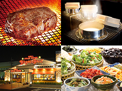 炭焼きステーキ、ハンバーグ・大かまどごはん・サラダバーという独自のスタイルで安全でおいしい料理と楽しい時間をお客様に提供しています。