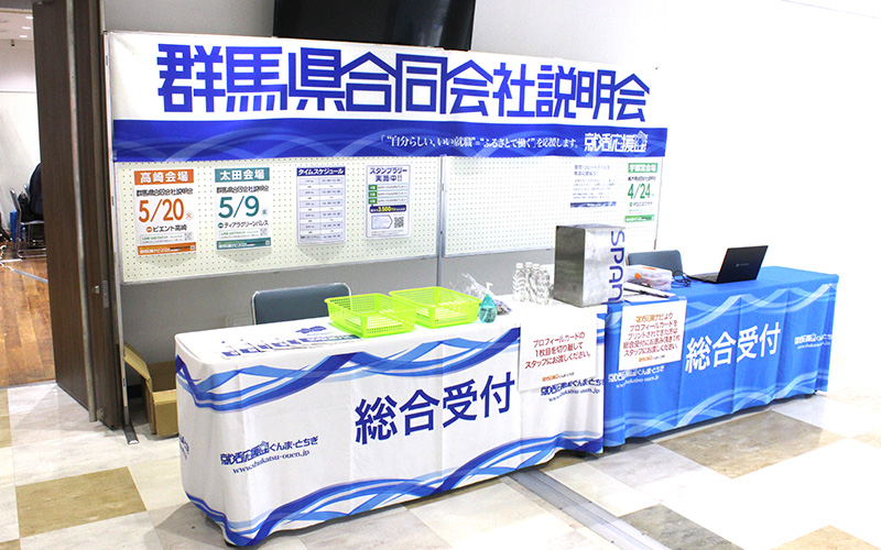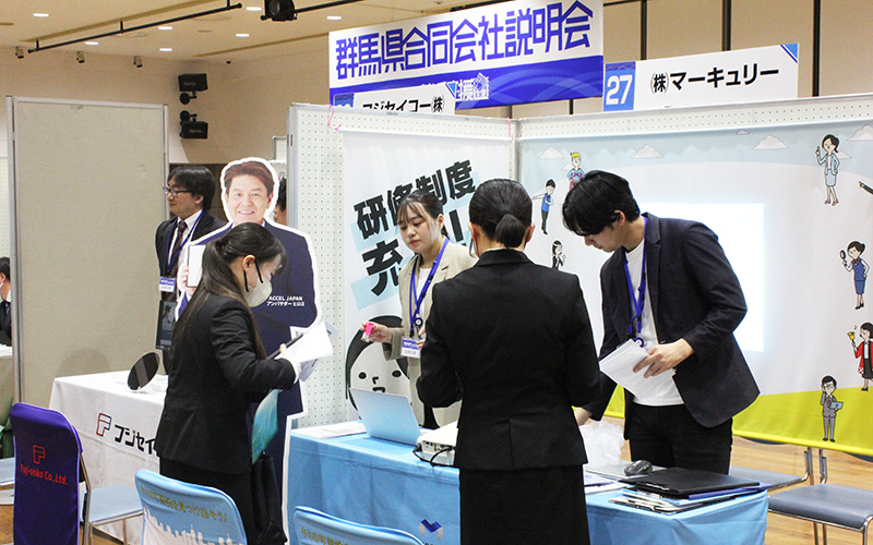 合同会社説明会では、当日多くの企業がブースを出展します。各企業の採用担当者と話せる、とても貴重な機会です。
