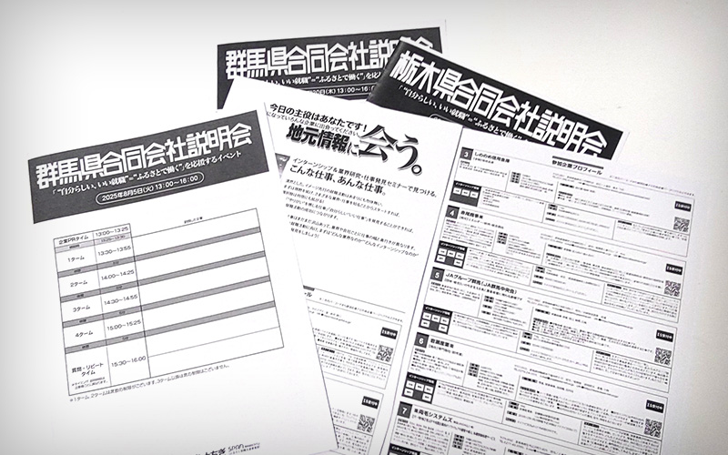 当日出展している企業の資料が置いてあります。もちろんタダでお持ち帰り自由。興味のある企業の資料はもちろん、 訪問できなかった企業の資料も持ち帰って研究しよう。情報収集はどん欲に!